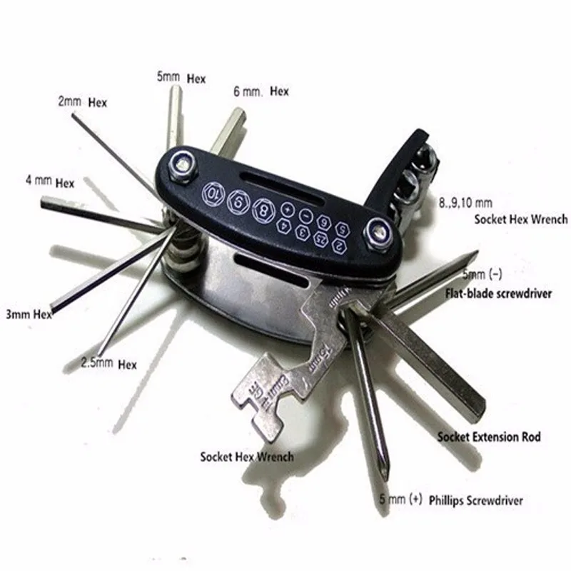 16 In 1 Multi-Function Bike Motorcycle Mechanic Repair Tool Travel Electric Car Allen Key Multi Hex Wrench Screwdriver Kit