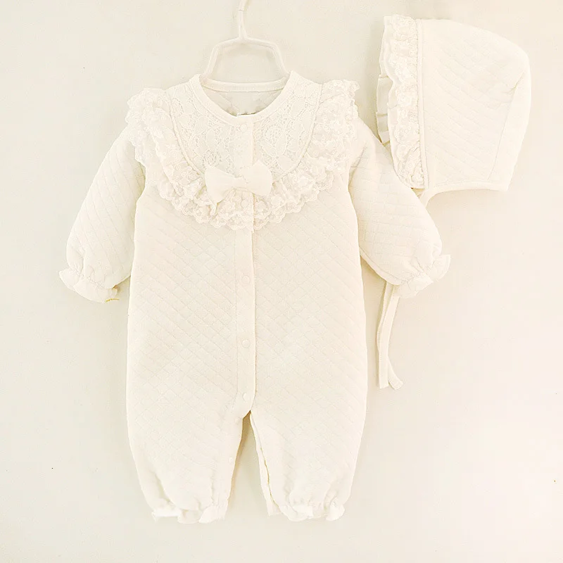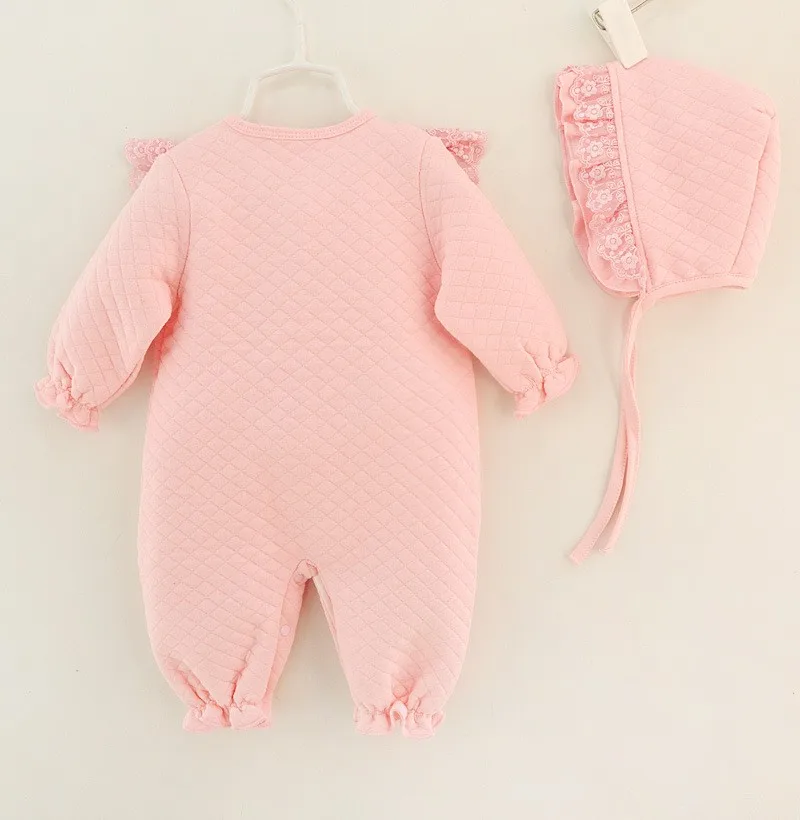 Newborn Baby Girl Clothes Cotton Coveralls Rompers Princess Lace Infant Clothing Set Romper+Hat 2pcs/set Roupas De Bebe Menina