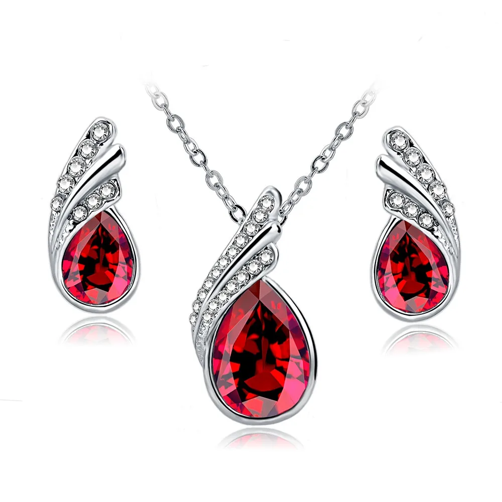 Fashion Jewelry Sets Silver Rhinestone Jewelry Sets Water Drop Necklace And Earrings Crystal Jewelry Set For Women SET1500374100% Brand New